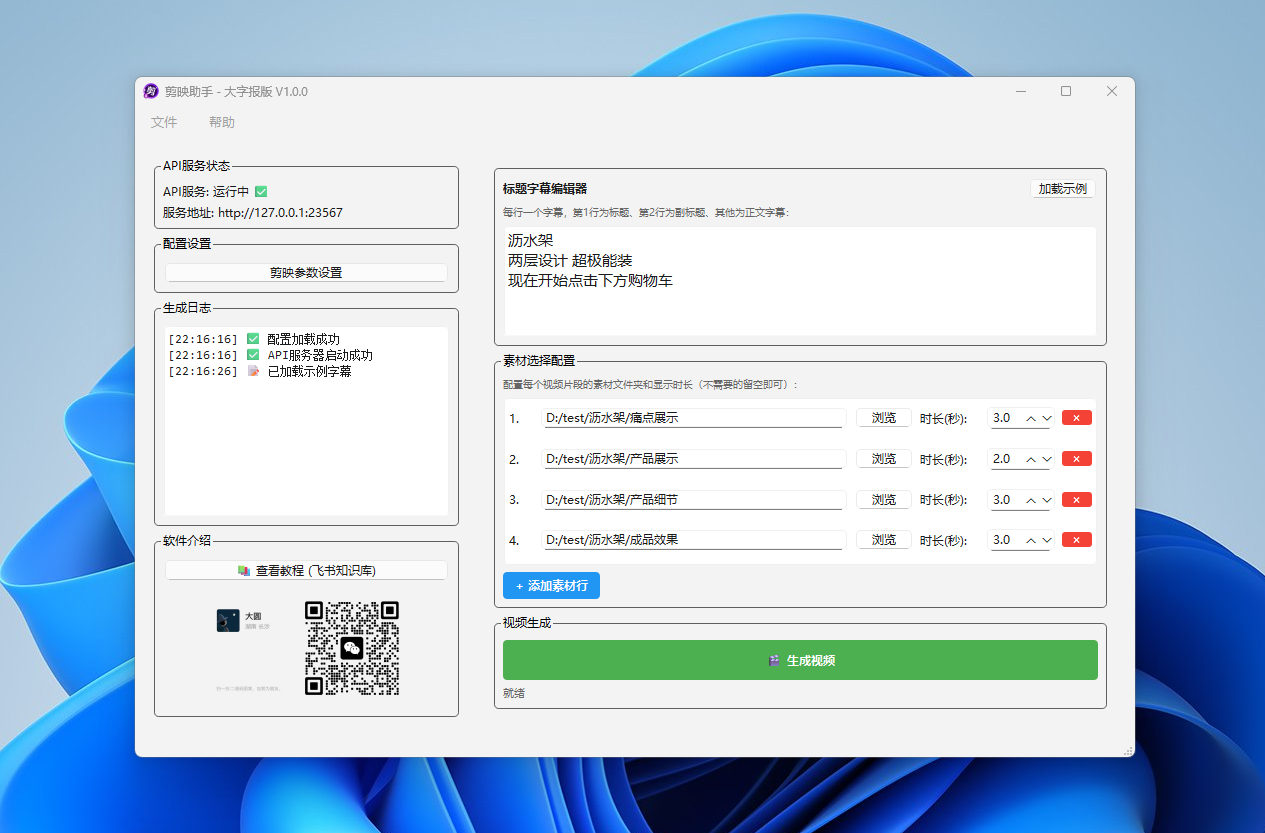 今天上班后,我就把之前自动化流程里的相关代码提炼出来,做成了一款“大字报”版本的「剪映助手」。