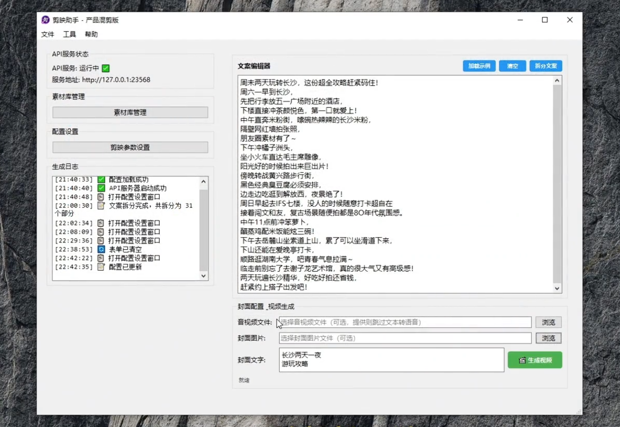 比如,输入一条爆款链接,系统会自动提取视频文案,调用 AI 改写,再匹配素材、保存并剪辑视频。