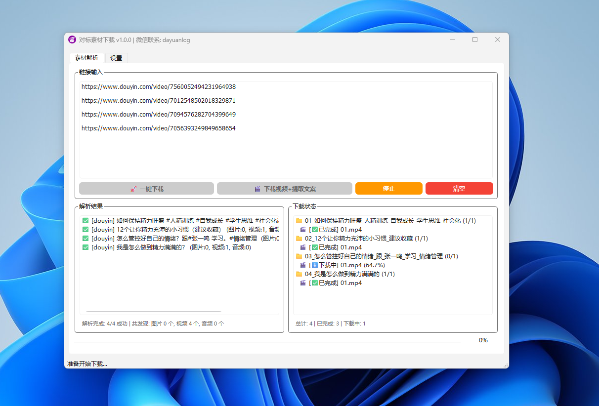 我们开发了一款工具,可实现多平台视频批量下载,并在下载同时自动提取文案,还能根据预设提示词,分析视频结构或提炼爆款开头。帮你高效完成那些重复、高强度的准备工作。