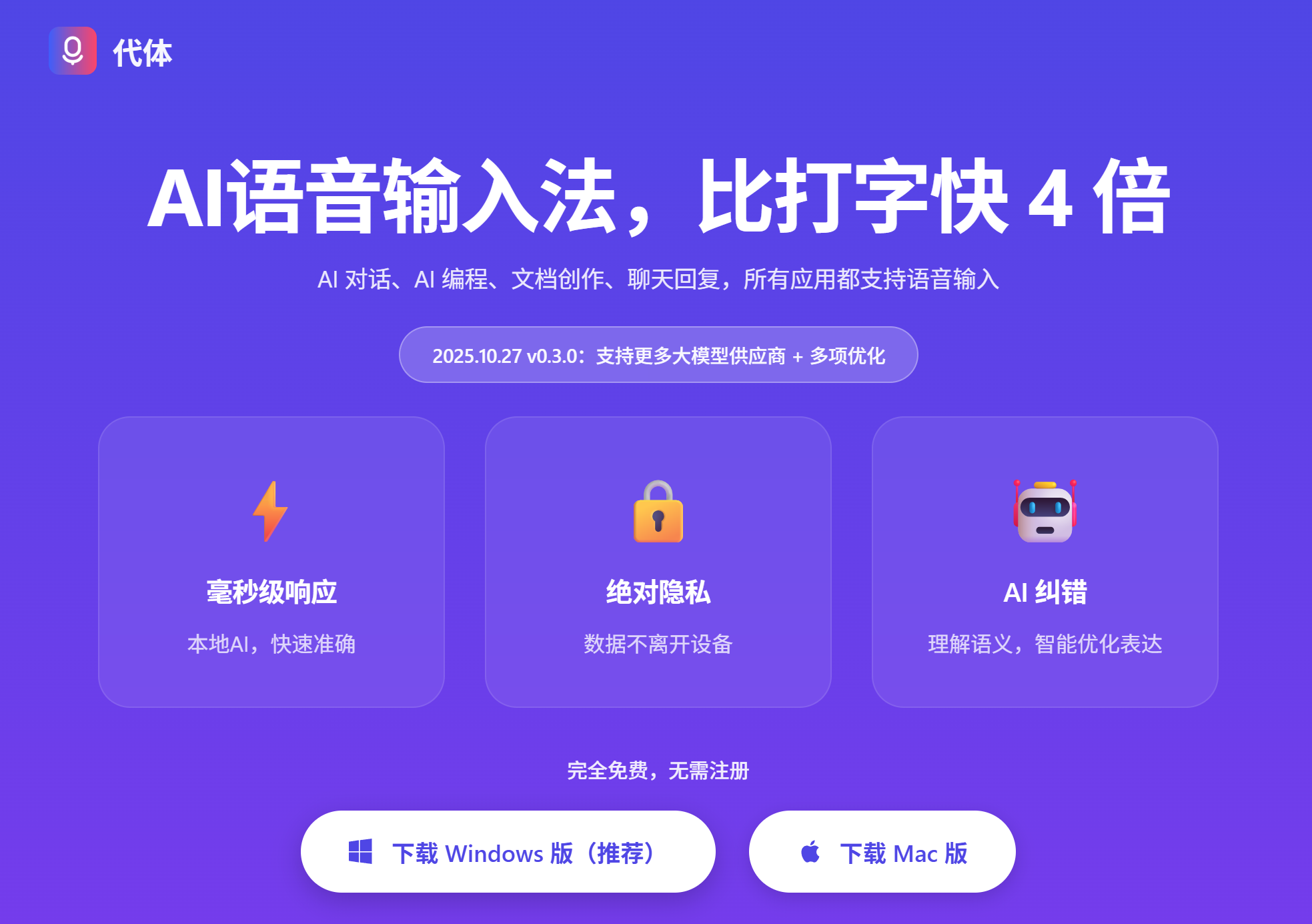 但 CapsWriter Offline 是个人开发者打造的,使用命令行窗口展示,没有做成普通用户方便使用的界面;代体则成熟度比较高,是由一个小创业团队完成的。